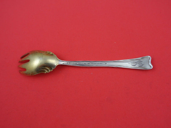Sterling silver Ice Cream Fork gold washed, with forget me not flowers 5 3/4" in the pattern Lap Over Edge Acid Etched by Tiffany and Co. It is monogrammed (monos vary) and is in excellent condition.