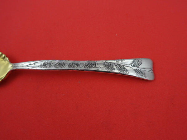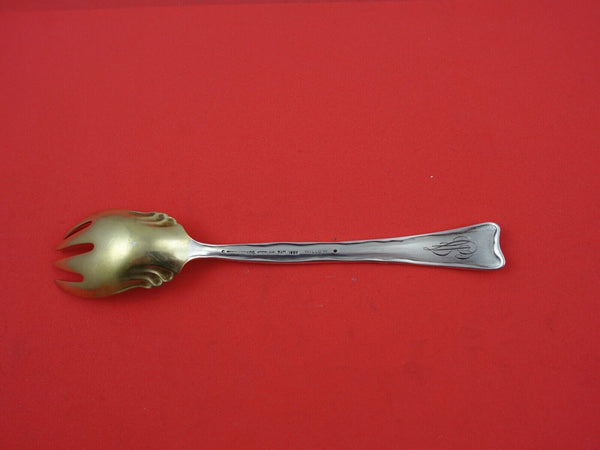Sterling silver Ice Cream Fork gold washed, with willow leaves 5 3/4" in the pattern Lap Over Edge Acid Etched by Tiffany and Co. It is monogrammed (monos vary) and is in excellent condition.