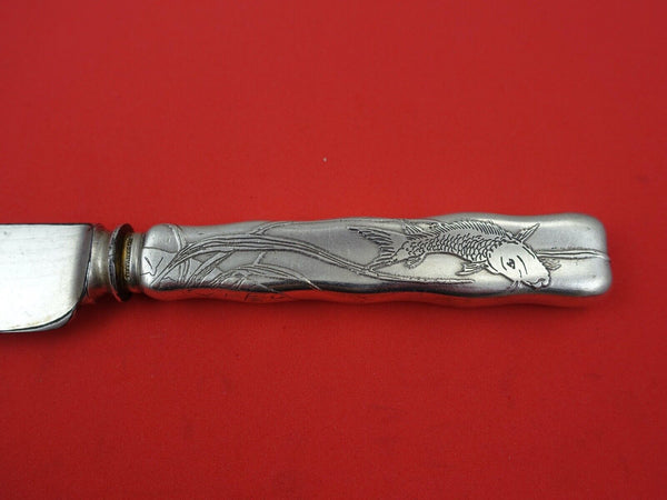 Sterling silver Regular Knife blunt, hollow handle all sterling with carp among seaweed 9 1/4" in the pattern Lap Over Edge Acid Etched by Tiffany and Co. It is not monogrammed and is in excellent condition.
