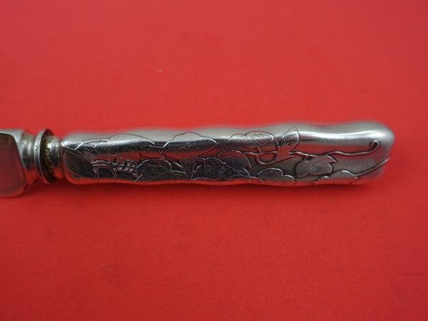 Sterling silver Regular Knife blunt, hollow handle all sterling with trumpet flowers and vines 9 1/4" in the pattern Lap Over Edge Acid Etched by Tiffany and Co. It is not monogrammed and is in excellent condition.