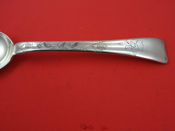Sterling silver Grapefruit Spoon, with fern leaves 8 5/8" in the pattern Lap Over Edge Acid Etched by Tiffany and Co. It is not monogrammed and is in excellent condition.