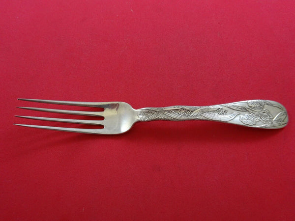 Sterling silver Dinner Fork with Irises 8" in the pattern Lap Over Edge Acid Etched by Tiffany. It is not monogrammed and is in excellent condition.