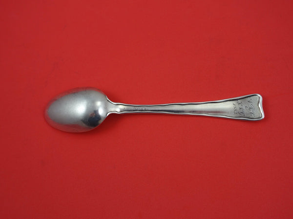 Sterling silver Place Soup Spoon with poinsettias, dated 1883, 7" in the pattern Lap Over Edge Acid Etched By Tiffany Co.. It is monogrammed (monos vary) and is in excellent condition.