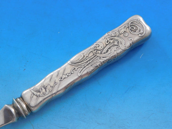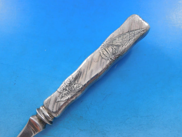 Sterling silver hollow handle with stainless implement/tines Buffet Fork with Cicada 9 1/4" in the pattern Lap Over Edge Acid Etched by Tiffany and Co. It is monogrammed (see photo), and is in excellent condition.