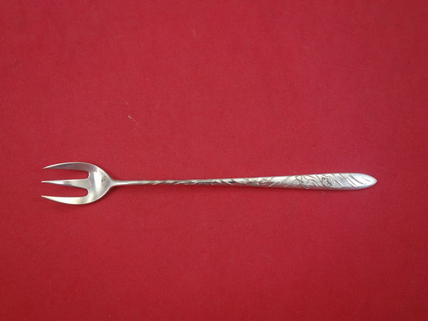 Sterling silver Cocktail Fork, leaves in wind motif, 5 1/2" in the pattern Lap Over Edge Acid Etched by Tiffany Co.. It is monogrammed (monos vary) and is in excellent condition.