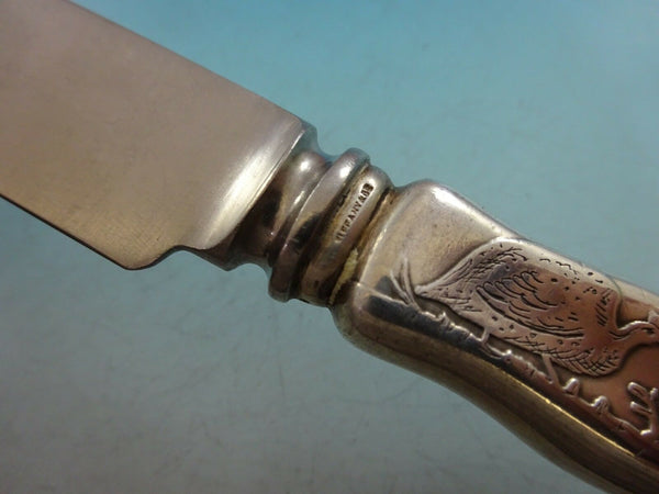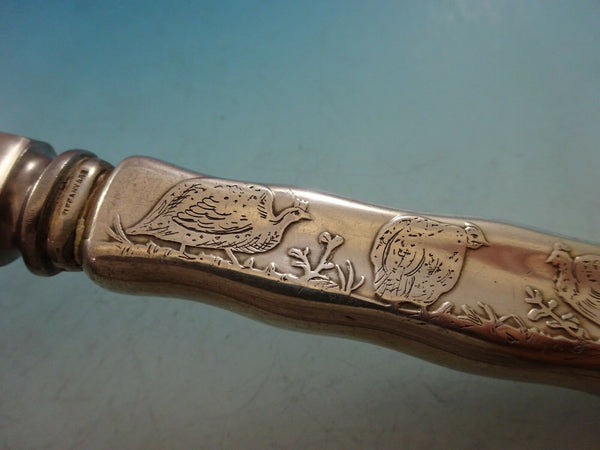 Sterling silver Dinner Knife with grouse 10 1/8" in the pattern Lap Over Edge Acid Etched by Tiffany. It is not monogrammed and is in excellent condition.
