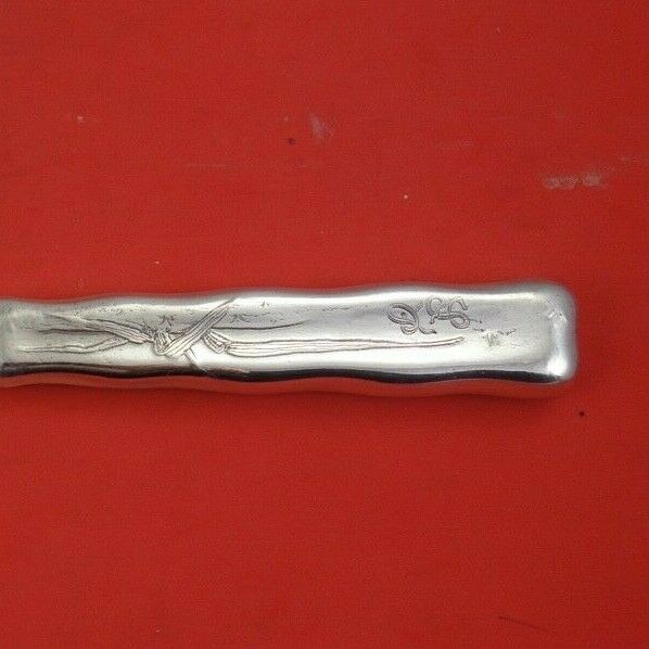 Sterling silver hollow handle with blunt stainless blade Dinner Knife 10 1/2" with three frogs handle motif in the pattern Lap Over Edge Acid Etched by Tiffany and Co. It is monogrammed on the reverse (monos vary) and is in excellent condition.