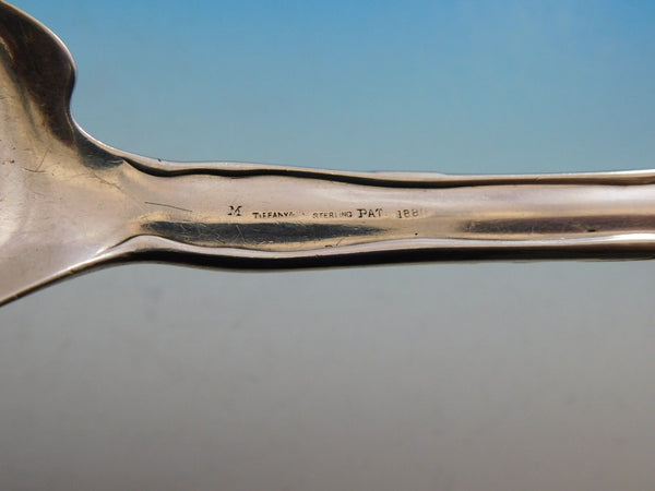 Stunning sterling silver Fish Server measuring 12 7/8" in the pattern Lap Over Edge Acid Etched by Tiffany. This multi-motif pattern is circa 1880 and features an array of designs from animals to fruits and vegetable to flowers. This piece features stunning butterfly and floral motif on the handle. It is monogrammed (see photo) and in excellent condition.