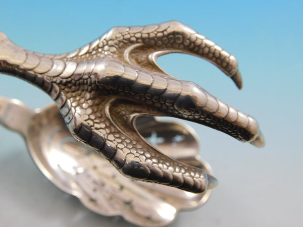 Lovely sterling silver Ice Tong measuring 8 1/2" in the pattern Lap Over Edge Acid Etched by Tiffany. This multi-motif pattern is circa 1880 and features an array of designs from animals to fruits and vegetable to flowers. This piece features a chicken claw and lovely pierced bowl. It is not monogrammed an in excellent condition.
