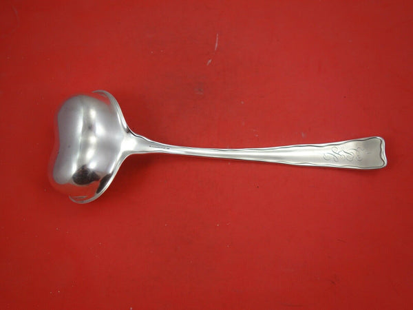 Sterling Silver Oyster Ladle heart shape bowl with flowers 11 1/2" In the pattern LAP OVER EDGE ACID ETCHED BY TIFFANY CO. It is monogrammed (monos vary) and is in excellent condition.