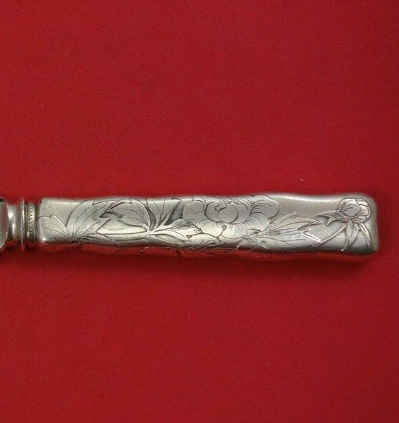 Sterling silver hollow handle with blunt blade Regular Knife with Rose Buds 9 1/4" in the pattern Lap Over Edge Acid Etched by Tiffany and Co. It is not monogrammed and is in excellent condition.