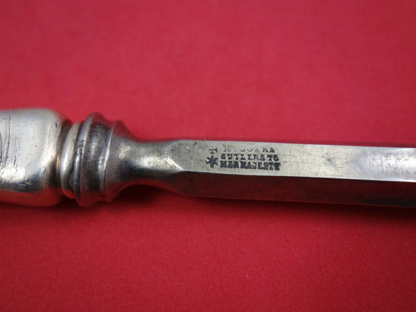 Sterling silver hollow handle with stainless implement Steak Carving Hone with Water Birds 13" in the pattern Lap Over Edge Acid Etched by Tiffany and Co. It is monogrammed (mono on reverse; see photo), and is in good estate vintage condition with some wear to the implement as shown in the photo, as expected with age.