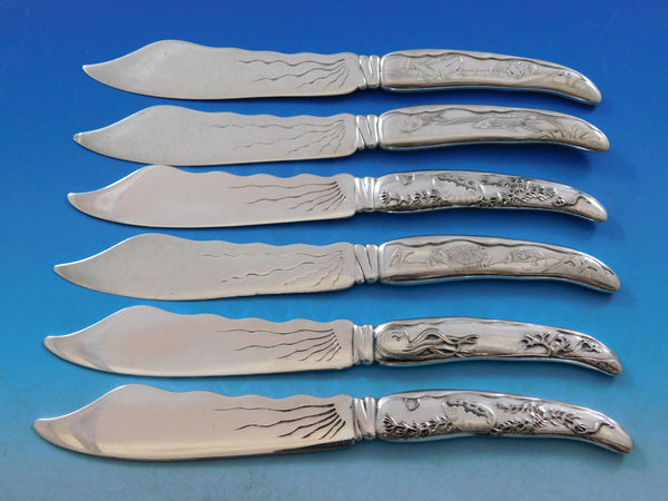 handle individual fish knives, 7 7/8" and 12 all-sterling fish forks, 6