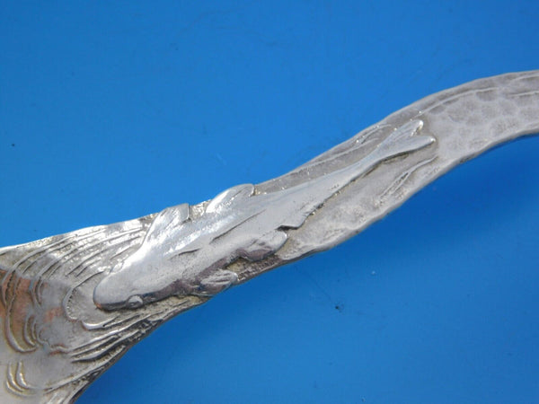 Sterling silver Teaspoon 6 1/4" in the pattern Lap Over Edge Applied by Tiffany and Co. This piece features an applied catfish swimming in a acid etched stream with a hand hammered background. It is not monogrammed and is in excellent condition. Remarkable!