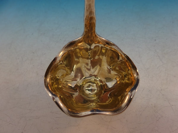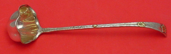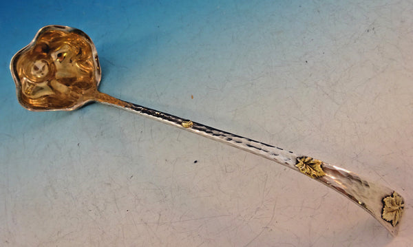 Rare Sterling Silver aesthetic Sauce Ladle with applied gold-washed leaves and bug (with leaf chomp marks), 7 1/8", in the pattern Lap Over Edge Applied by Tiffany Co. It is not monogrammed and is in excellent condition.