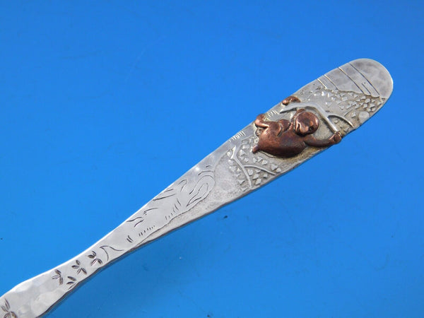 Sterling silver Teaspoon 6 1/4" in the pattern Lap Over Edge Mixed Metals by Tiffany and Co. This piece features an applied copper monkey in tree. It is not monogrammed and is in excellent condition. Fabulous!