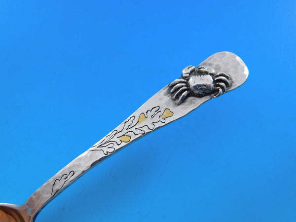 Sterling silver Demitasse Spoon with applied crab and seaweed with gold 4 3/8" in the pattern Lap Over Edge Mixed Metals By Tiffany Co.. It is not monogrammed and is in excellent vintage condition.