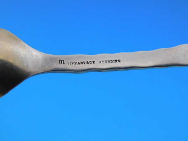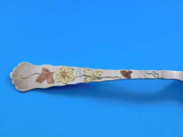 Sterling silver Demitasse Spoon with mixed metal flower, leaves and vine, 4 3/8" in the pattern Lap Over Edge Mixed Metals By Tiffany Co.. It is not monogrammed and is in excellent vintage condition.