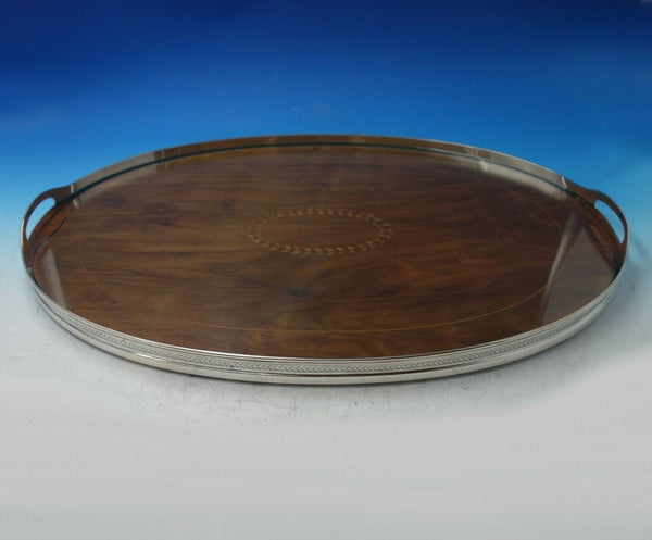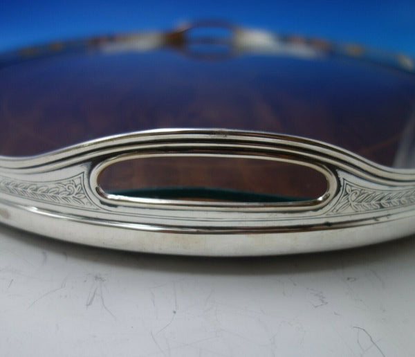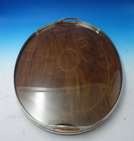 Gorgeous Marquise by Tiffany and Co sterling silver, wood, and glass gallery tray with a design in the center (see photos), circa 1911. This piece measures 24" x 16 1/2". It is monogrammed and is in good vintage condition as shown in the photos. Stunning piece!