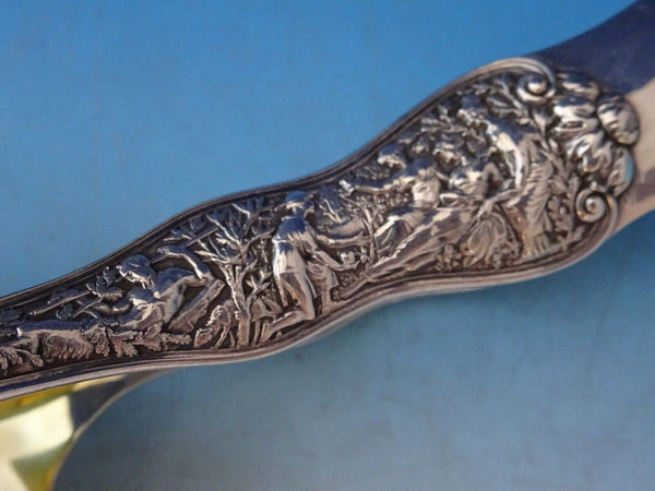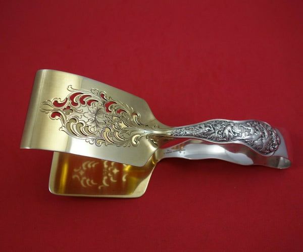 Sterling silver Asparagus Serving Tong Gold Washed and Bright-Cut 7 1/2" in the pattern Olympian by Tiffany and Co. It is not monogrammed and is in excellent condition.