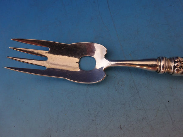 Sterling silver hollow handle all sterling Fish Fork Pierced 6 3/4" in the multi-motif pattern Olympian by Tiffany and Co. It is monogrammed on the reverse (monos vary) and is in excellent condition. Rare piece!