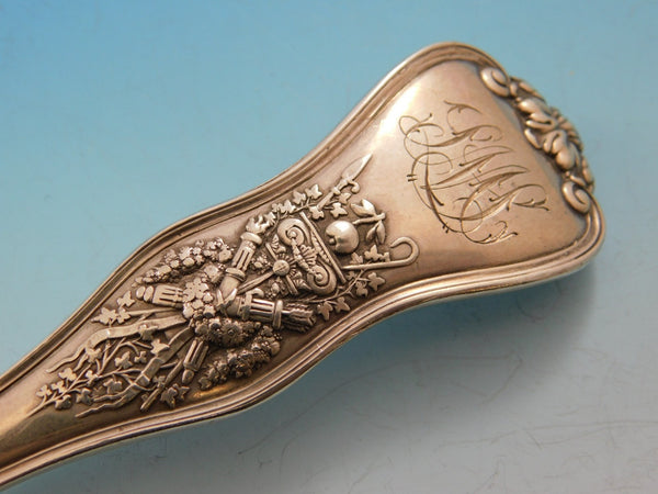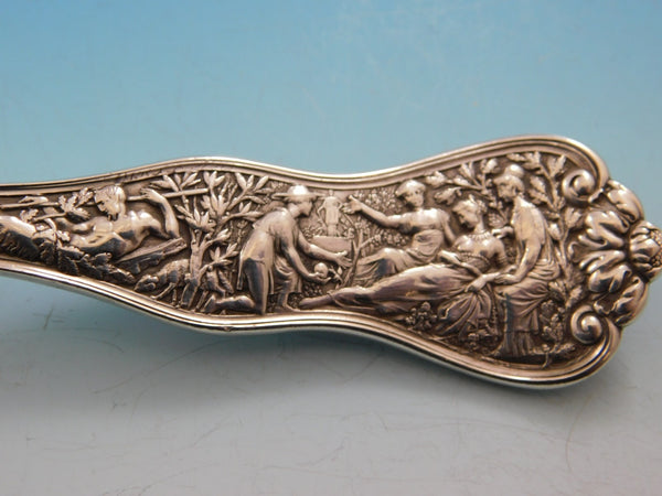 The Olympian pattern, which was introduced by Tiffany Co. in 1878, is the most elaborate and complex of all Tiffany flatware designs. Each piece of Olympian is designed to illustrate a well-known story of Classical mythology. The subjects vary with the size of the handles on the different pieces.