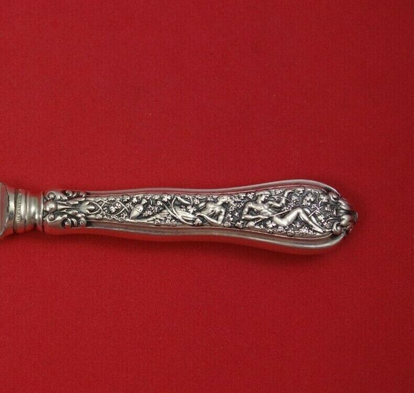 Sterling silver hollow handle with silverplate serrated blade Fruit Knife 7" in the pattern Olympian by Tiffany and Co. It is monogrammed (mono on reverse/monos vary) and is in excellent condition.