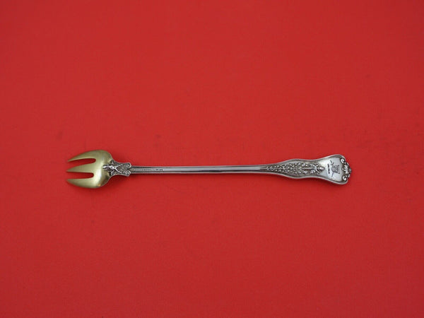 Sterling Silver Oyster Fork, wide 3-tine and gold washed 6 1/8" in the pattern Olympian by Tiffany Co.. It is monogrammed (monos vary) and is in excellent condition.