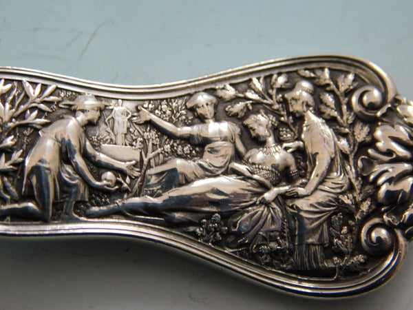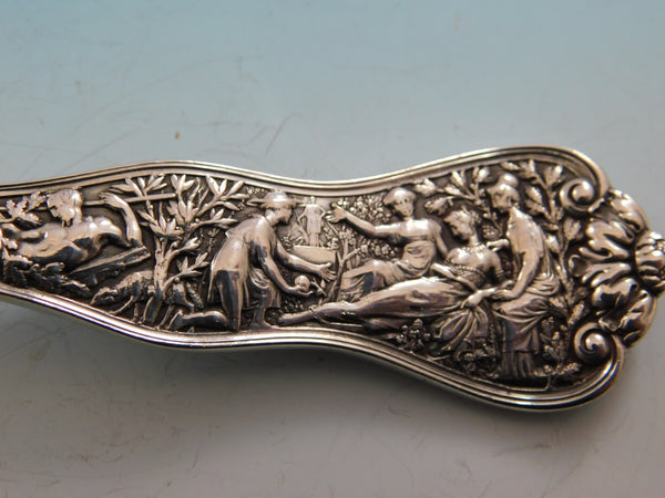 The Olympian pattern, which was introduced by Tiffany Co. in 1878, is the most elaborate and complex of all Tiffany flatware designs. Each piece of Olympian is designed to illustrate a well-known story of Classical mythology. The subjects vary with the size of the handles on the different pieces.