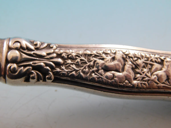 The Olympian pattern, which was introduced by Tiffany Co. in 1878, is the most elaborate and complex of all Tiffany flatware designs. Each piece of Olympian is designed to illustrate a well-known story of Classical mythology. The subjects vary with the size of the handles on the different pieces.