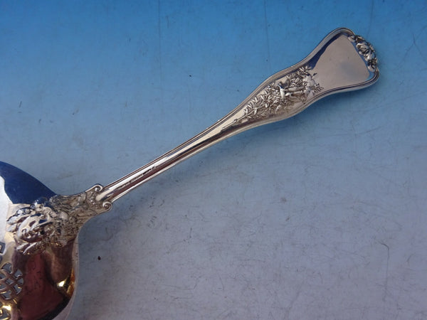 Sterling silver Pea Spoon with Snowflake Piercing 9" in the multi-motif pattern Olympian by Tiffany and Co. It is not monogrammed and is in excellent condition. Beautiful piece!