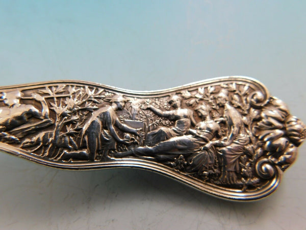 The Olympian pattern, which was introduced by Tiffany Co. in 1878, is the most elaborate and complex of all Tiffany flatware designs. Each piece of Olympian is designed to illustrate a well-known story of Classical mythology. The subjects vary with the size of the handles on the different pieces.