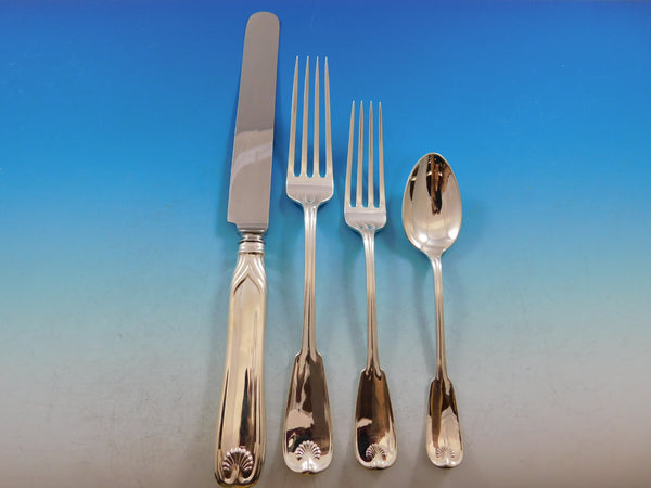 Superb rare dinner luncheon Palm by Tiffany Co. sterling silver Flatware set - 75 pieces. This pattern was patented in the year 1871 and features a fiddle shaped handle, a stylized palm, and a thread border. This set includes: