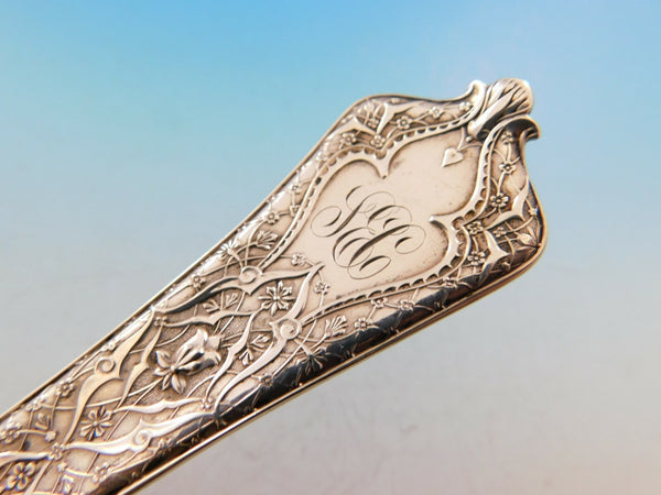 Intriguing sterling silver Ice Cream Server measuring 12 1/4" in the pattern Persian by Tiffany. This piece features stunning design throughout the handle and beautifully shaped serving area. It is monogrammed (see photo) and in excellent condition.