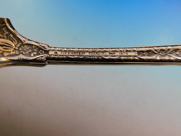 Intriguing sterling silver Ice Cream Server measuring 11 5/8" in the pattern Persian by Tiffany. This piece features stunning design throughout the handle and beautifully shaped rose gold washed serving area. It is monogrammed (see photo) and in excellent condition.