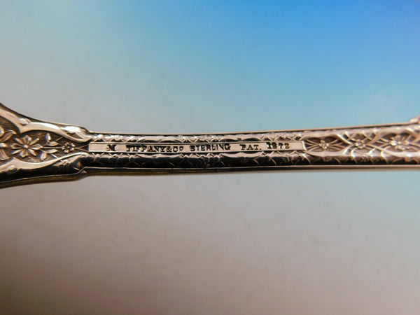 Gorgeous sterling silver Pie Server measuring 10 1/2" in the pattern Persian by Tiffany. This piece features stunning design throughout the handle and a beautifully gold-washed heart shaped serving area. It is monogrammed (monos vary) and in excellent condition.