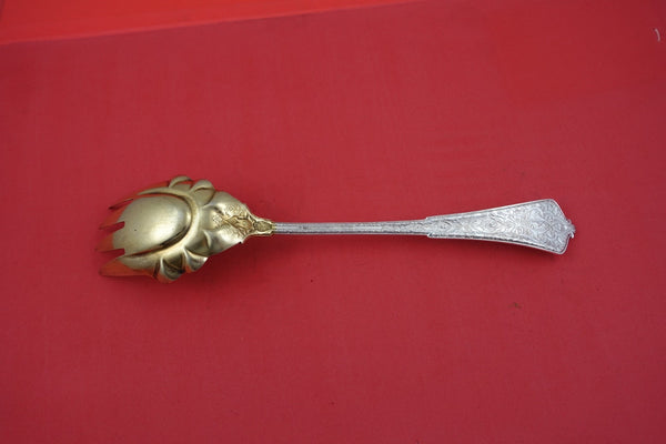 Sterling Silver Salad Serving Fork, gold washed and fluted 10 1/2" in the pattern Persian by Tiffany. It is not Monogrammed and is in excellent condition.