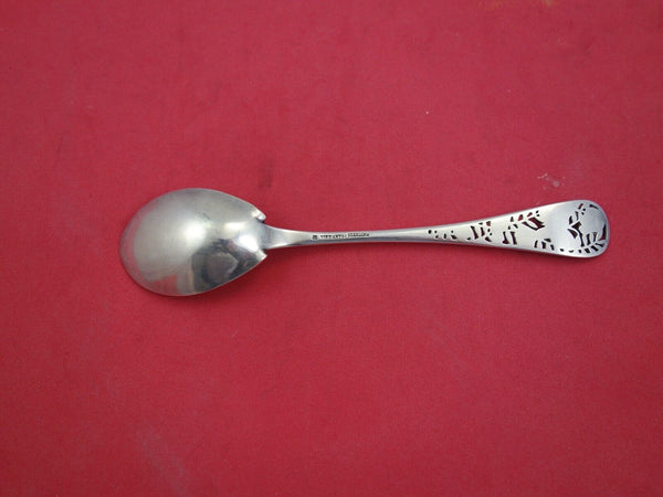 Stunning sterling silver Ice Cream Spoon with butterfly and dragonfly by flowers 6" in the pattern Pierced Handle by Tiffany. It is not monogrammed and in excellent condition.
