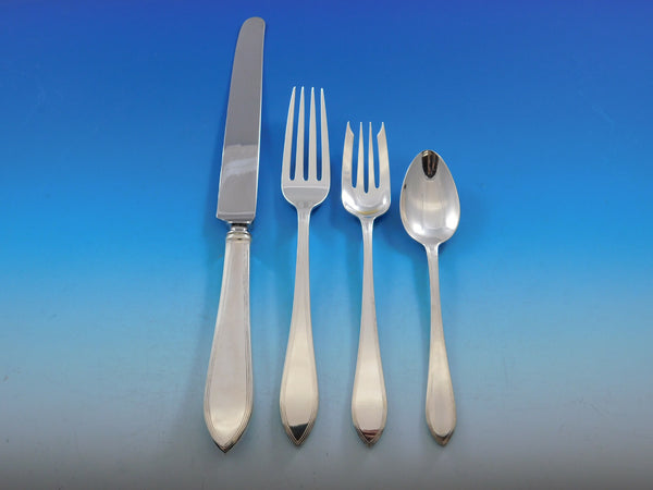 Superb Dinner and Luncheon Size "Reeded Edge" by Tiffany and Co. sterling silver Flatware set, 84 pieces. This pattern was introduced by Tiffany in the year 1937 and features a classic Queen Anne design with a stamped reeded border. This set includes: