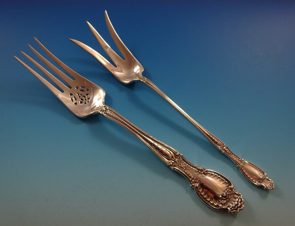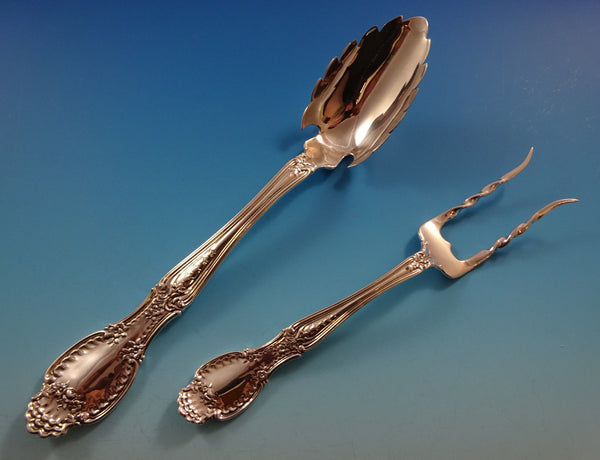 The pattern Richelieu by Tiffany Co. was patented in 1892. It was discontinued in 1913, but reactivated in 1952 until later discontinued again. It is assumed this pattern is named after Louis-Francois-Armond de Vignerot du Plessis, who invented mayonnaise and the sauce Richelieu is named after. The pattern features C-scrolls bordering the front and back, with an inner shell border. Featuring flowers on the handle with a shell at the tip.