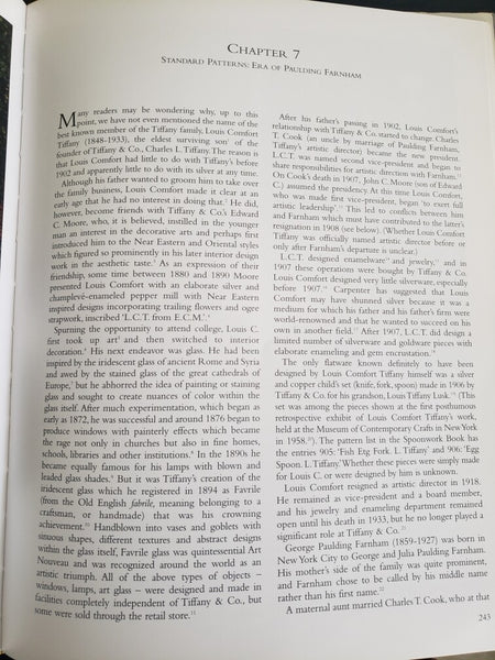 George Paulding Farnham (1859-1927) was born in New York City. His aunt married Charles T Cook, who assumed presidency of Tiffany after the death of Charles L Tiffany in 1902. Farnham attended Tiffany school and was trained by Edward C Moore and Charles Gosjean. He stayed with Tiffany and eventually became a board member in 1888 and in 1893 was appointed chief designer and head of jewelry later also assuming the role of artistic director of the silver department as well. His flatware designs were similar to jewelry designs, very ornate, elaborate, and in "beaux arts" tradition. He created six full sterling lines for Tiffany during his time, before leaving Tiffany in 1908.
