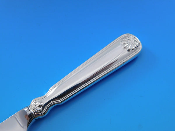 Sterling Silver CUSTOM MADE HOLLOW HANDLE WITH STAINLESS BLADE CHEESE KNIFE WITH PICK 7 5/8" in the pattern SHELL AND THREAD BY TIFFANY CO. It is not monogrammed and is in excellent condition.