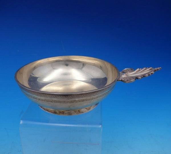 1 - Porringer (with cast Grecian style handle): Measures 2 5/8" tall x 5 1/2" in diameter and weighs 7.85 troy ounces.