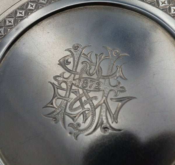 This set is monogrammed with an intricate, decorative central monogram with date 1872 and is in excellent vintage condition.