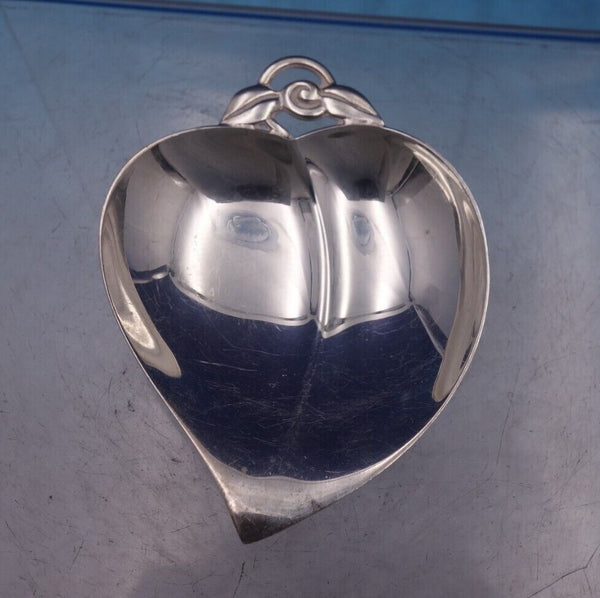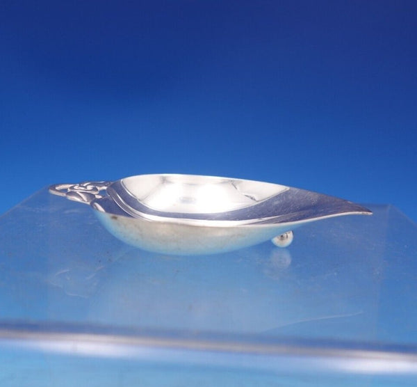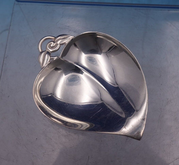 Beautiful Tiffany and Co sterling silver nut dish in the form of a leaf with ball feet. This dish measures 1/2" tall x 3 1/4" x 2 1/2" and weighs 1.25 troy ounces. It is not monogrammed and is in good vintage condition. Delightful!