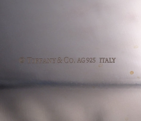 Spectacular Tiffany and Co sterling silver plate in a paper plate style made in Italy. This plate measures 3/8" tall x 8 1/2" in diameter and weighs 12.3 troy ounces. It is monogrammed in the center "JER" (see photos), and is in good estate condition as shown. Remarkable piece!