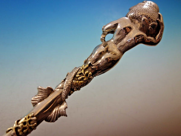 Sterling silver Punch Ladle 15" with 3D mermaid and dolphin, with gold accent seaweed and bowl by Tiffany.