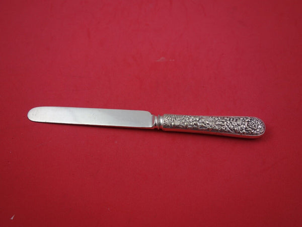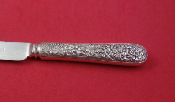 Sterling silver Luncheon Knife with blunt silverplated blade, 8 3/4" with floral repousse motif by Tiffany and Co. It is monogrammed and is in good vintage condition.