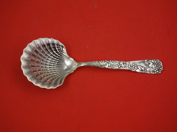 Sterling silver Berry Spoon Clam Shell with Grapes Motif 9" in the multi-motif pattern Vine by Tiffany and Co. It is not monogrammed and is in excellent condition.
