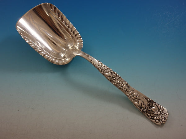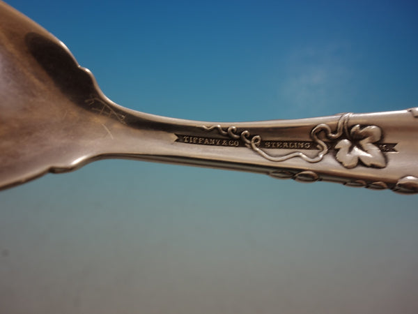 Stunning Vine by Tiffany and Co. Ice Cream Set - 15 Pieces. This set includes:12 Ice Cream Spoons, with gourds, 6" 1 Ice Cream Server, with grapes, 11 1/4" 1 Sugar Sifter, with gourds, 6 3/8" 1 Cracker Scoop, with grapes, 9 1/2" Includes original fitted Tiffany box in As-Is condition. Interior is in great condition, exterior is rough.